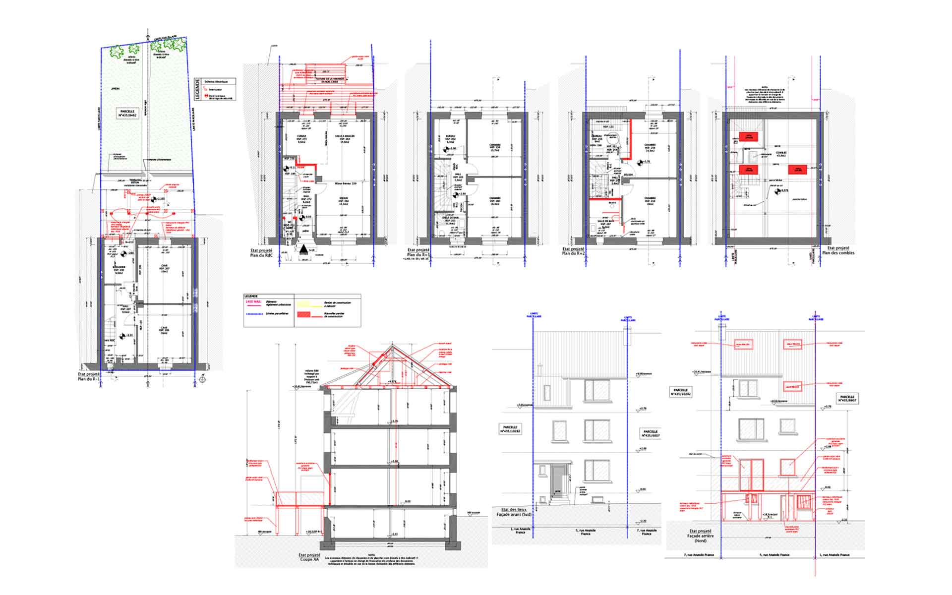dessins des plans (plans/coupes/façades) et des détails de mobilier
